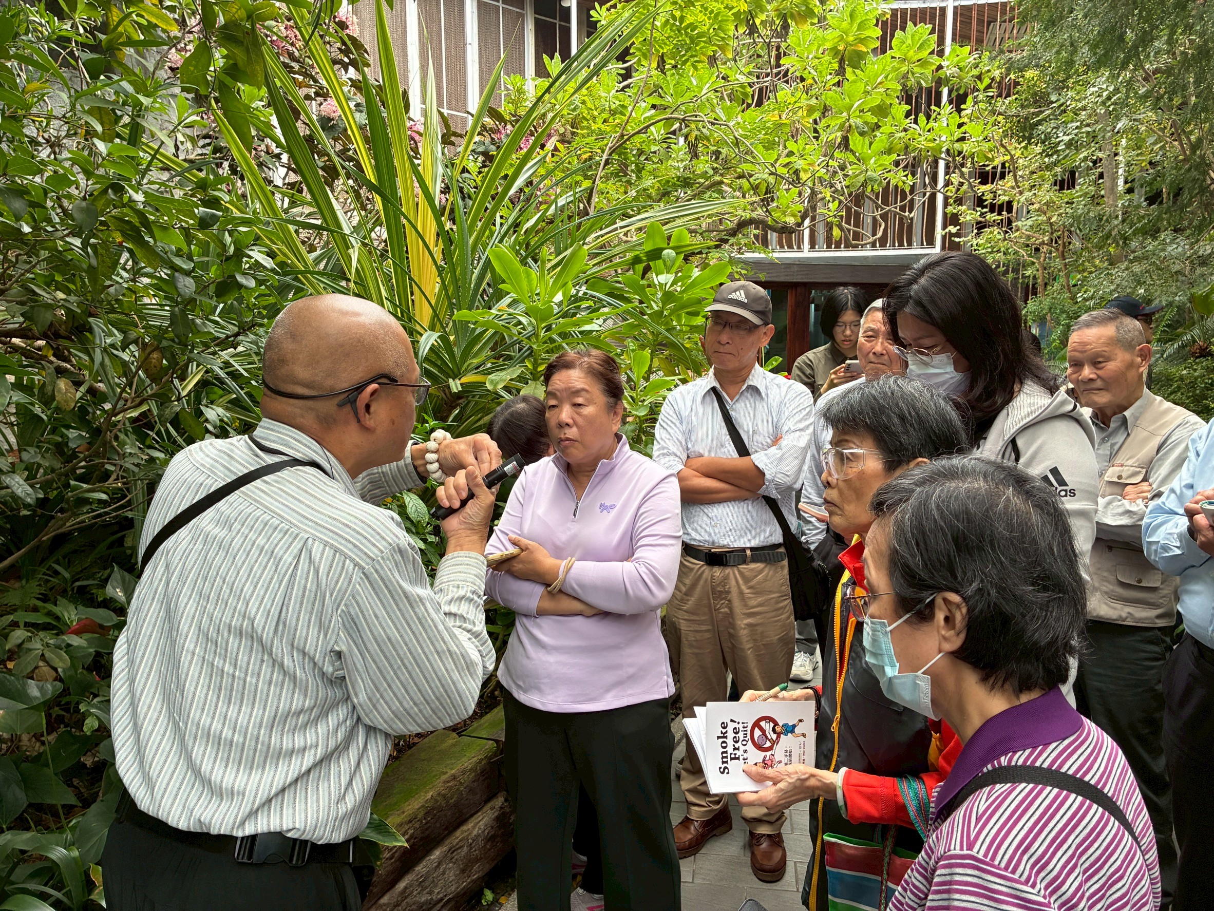 在解說進行時,也必須給予植物本身應有的尊重與保護。人體體溫遠高於植物適合的生長溫度,若解說員或民眾反覆用手觸摸或翻動葉片,可能會造成植物受傷。因此在展示植物細節時,應盡量使用筆、指示物或手電筒等工具輔助。避免直接用手翻動葉片或花朵,應把植物當作需要照顧的生命,而不是可以隨意翻動的展示物,這種態度不僅能保護植物,也能向觀眾示範正確的觀察方式。
